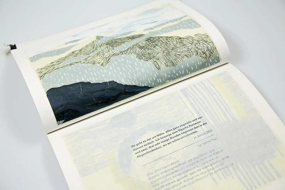 Begleitet wird diese praktische Arbeit von der künstlerischen Umsetzung, dem reellen Spiel mit dem Medium Brief. Drei Briefpartner, drei Geschichten und Leben, begleitet ein Jahr lang in Wort und Bild. Originalgrafiken, Briefe und Zitate (gedruckt auf der Druckerpresse), zeichnen eine Idee über die Kraft und Wahrhaftigkeit von Briefen und dem Zauber